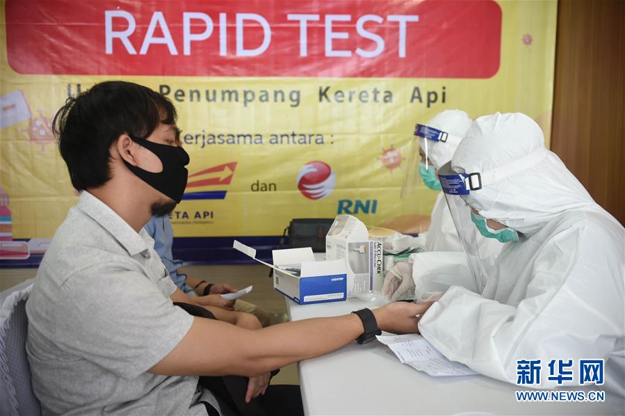 7月27日,工作人员佩戴防护面罩和口罩在印度尼西亚雅加达的一个火车站工作。 印度尼西亚国家抗灾署27日发布的新冠疫情数据显示,该国确诊病例比前一天增加1525例,累计确诊100303例;累计死亡4838例;累计治愈58173例。 新华社发(祖卡南摄)