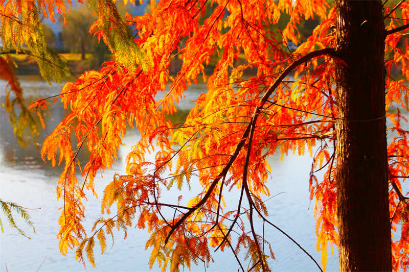 11月25日,初冬暖阳,淮滨县东湖的落羽杉也红了。杉林里,不少人纷纷慕名前来打卡、拍照。那暖意、那冬韵、那美景,是一片欢乐祥和场景的再现。