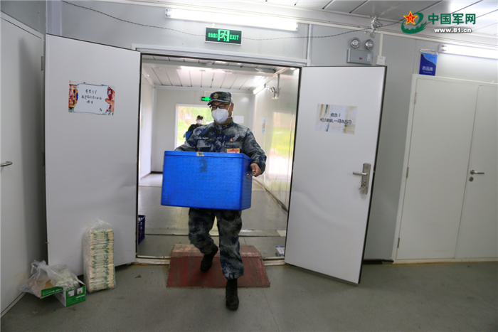 苏昱亚在搬运餐饮箱