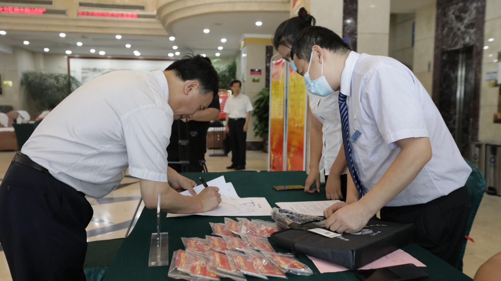 6月7日,参加市政协五届五次会议的政协委员陆续来到报到点报到。报到现场秩序井然,防控措施严密到位。委员们按照规定做好疫情防控,戴好口罩,进行测温、亮码,再签到、登记、领取材料,及时了解大会议程和安排。
